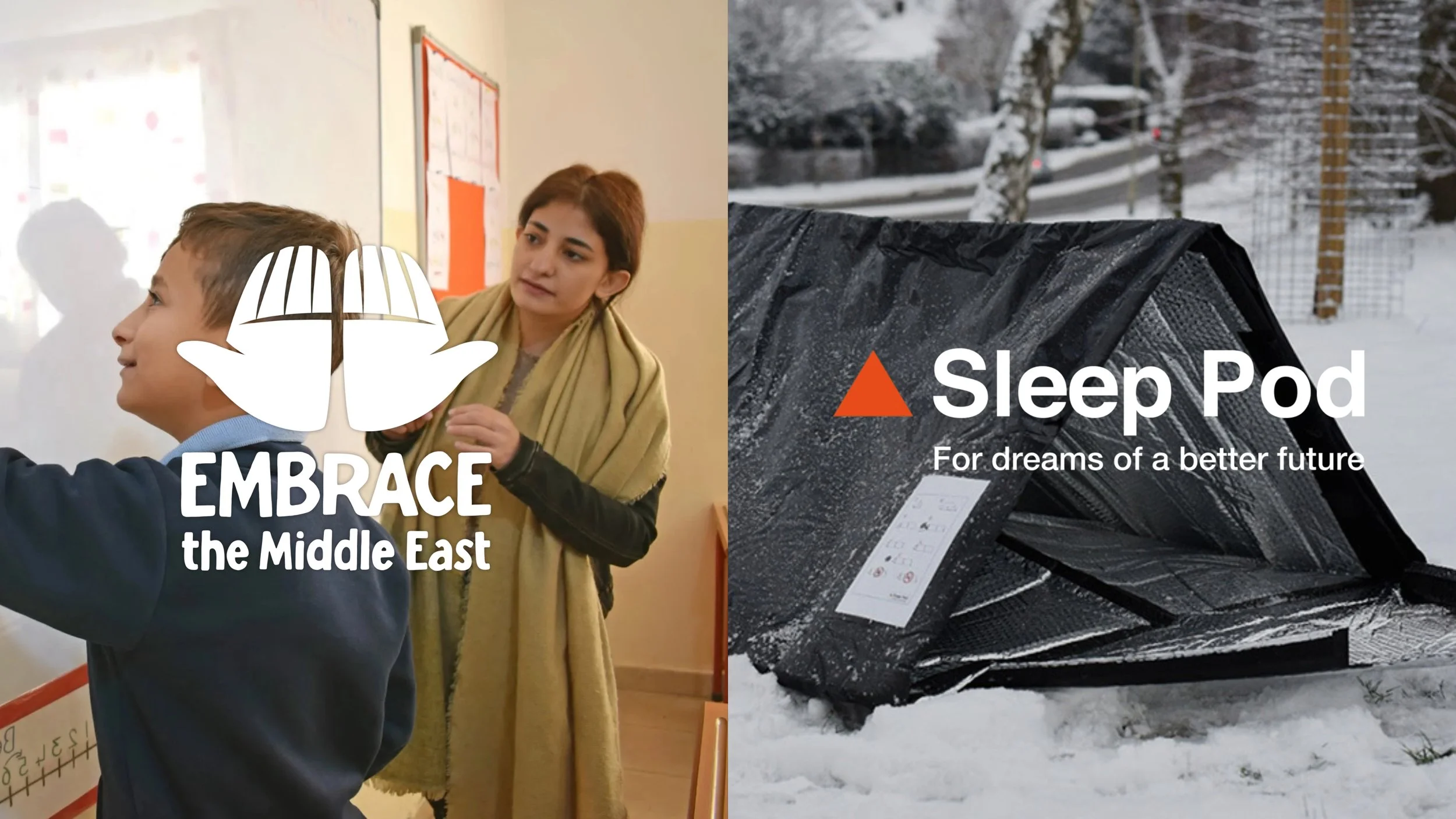Throughout December each year, we raise money for two charities, one local and one global. This year the money raised throughout this Christmas season will be donated to Sleep Pods and Embrace the Middle East.