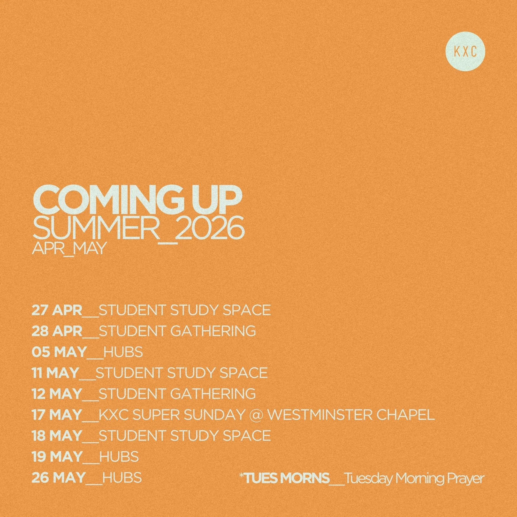 Or feel free to get in touch by emailing our Student Pastors Emma (emma.sowden@kxc.org.uk) and Joe (joe.alexander@kxc.org.uk).